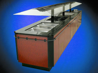 - Corian top is precision routered in any configuration to accommodate various food container arrangements, sizes and shapes
