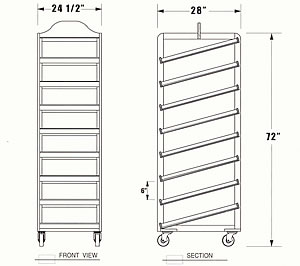 transport from prep area to your sales floor. Its narrow upright shape